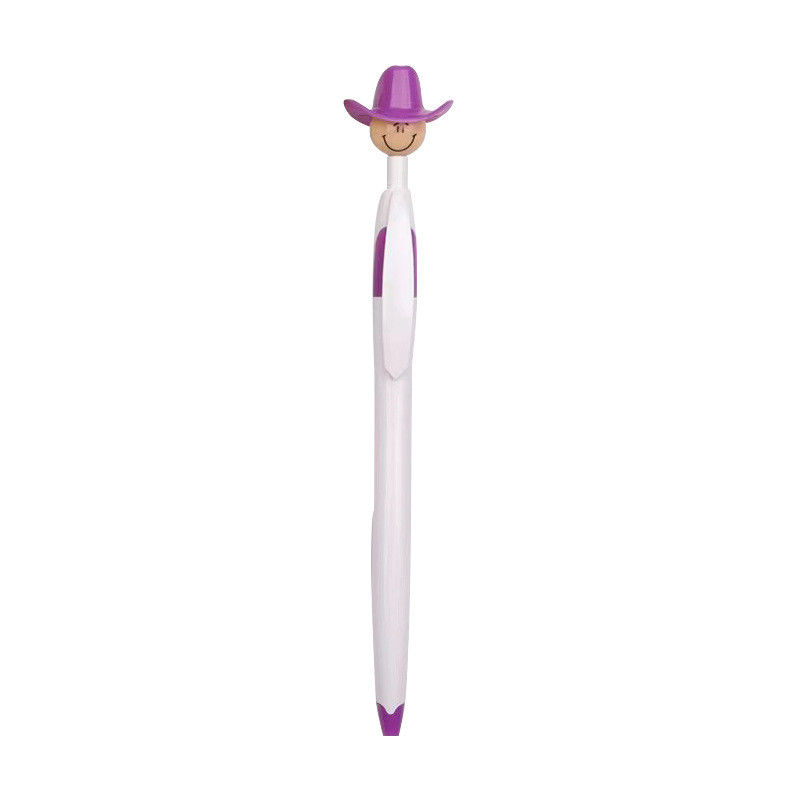 A cowboy plastic ball pen is a novelty pen designed in the shape of a cowboy or with cowboy-themed decorations. These pens often have a plastic barrel molded to resemble a cowboy figure, complete with a hat, boots, and other characteristic elements of cowboy attire. The ballpoint tip is typically retractable and may be located at the end of the pen or integrated into the design in a creative way. Cowboy plastic ball pens are often popular as souvenirs, gifts, or novelty items, particularly among fans of western culture or for themed events such as rodeos or country music festivals. They add a fun and whimsical touch to writing instruments while also serving their practical function.