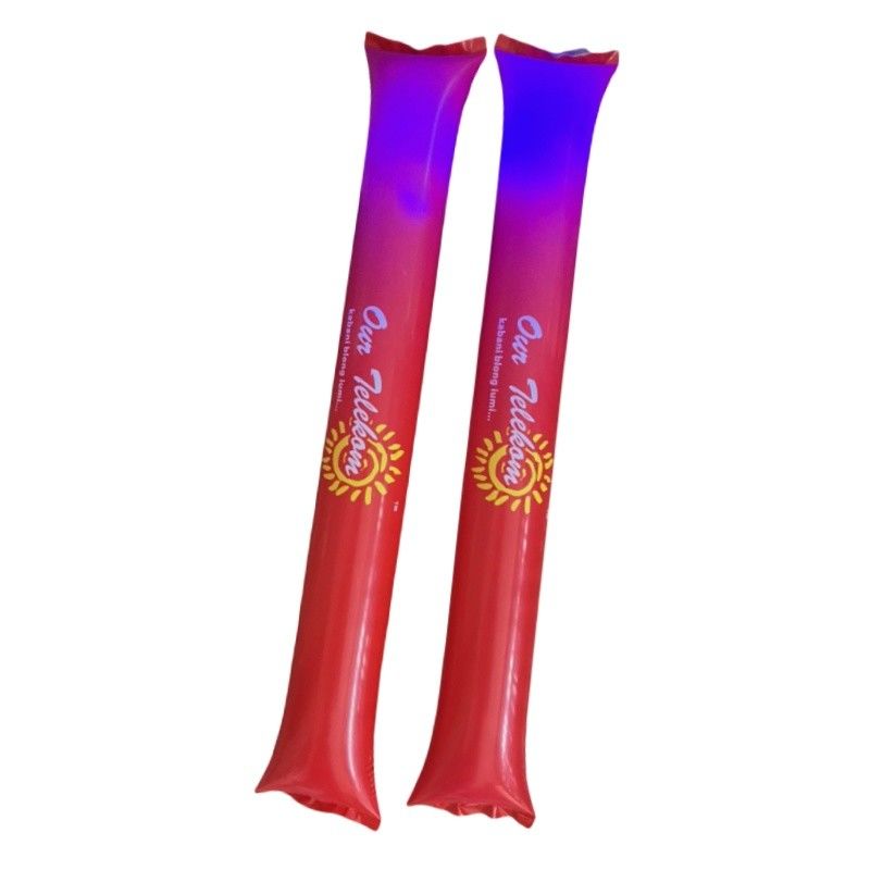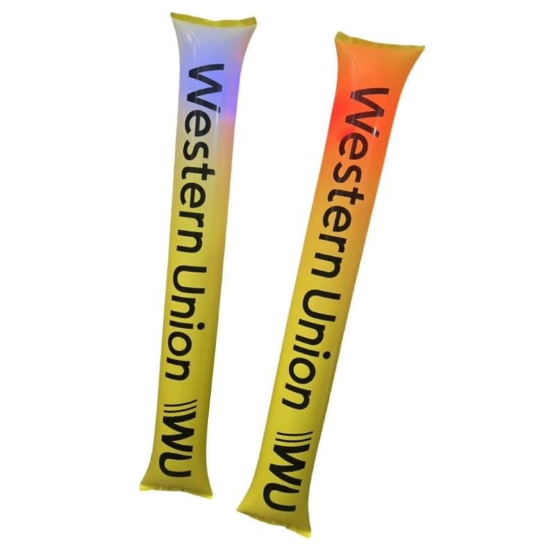 Bang bang stick is a colloquial term for a variety of inflatable objects, typically long and narrow, that are often seen at sporting events or celebrations. When struck together, they produce a loud noise, resembling the sound of gunfire or explosions, hence the name "bang bang stick." These inflatable sticks are usually branded with team logos, slogans, or advertisements, and they're popular among fans as noise makers to show support for their team or to create excitement during events.