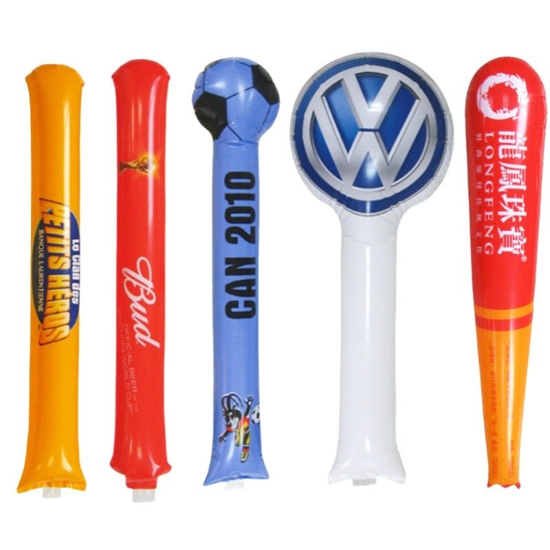 Cheering sticks, also known as thundersticks or bam bams, are inflatable plastic tubes used to create noise and excitement at events such as sports games, concerts, and rallies. Typically, they are made of polyethylene and are inflated by banging them together or using a small straw to blow air into them. When struck against each other or any other surface, they produce a loud noise, making them a popular choice for cheering on teams or performers. They're often seen in large crowds, adding to the energetic atmosphere of the event.